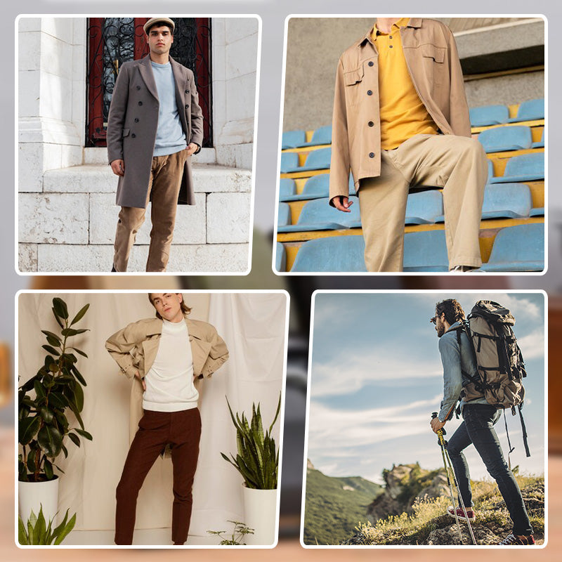 Farge: Svart, grå, blå, militærgrønn, khaki, kaffe