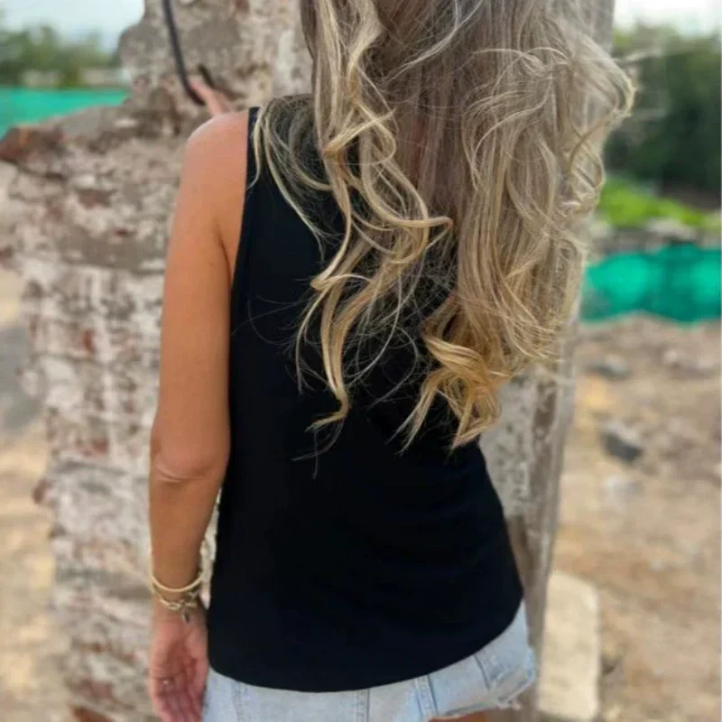 UREGELMESSIG NEDERKANT – Den uregelmessige kanten og det sammenlåsende designet er perfekt for å skape en uanstrengt, men moteriktig look. Enten du bruker den alene eller i lag på lag, fremhever denne tanktoppen silhuetten din og fremhever trekkene dine, noe som gir en karakteristisk stil.