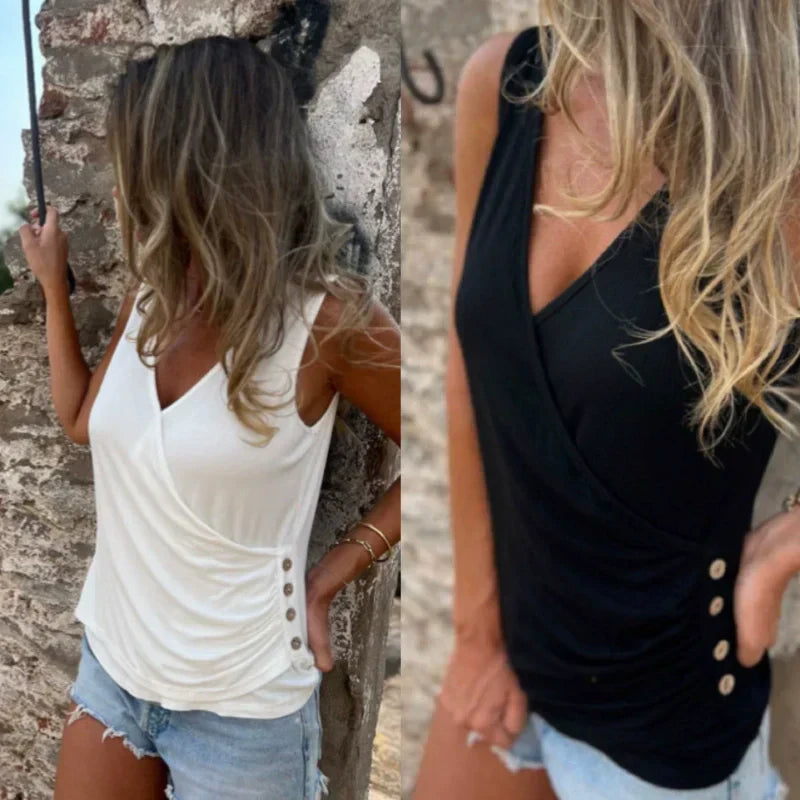 Pakken inkluderer:1 * Tank Top med V-hals og kryssede knapper