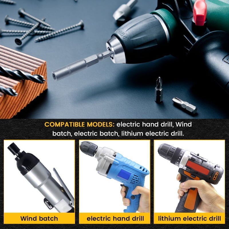 Kompatible modeller: Dypere hylse, bedre å ta ut de lengre skruene og boltene, daglige korte bolter kan også brukes. Den er egnet for de fleste håndelektriske håndbor, vindbatch, elektriske batch, litiumelektriske bor.
