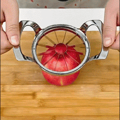 [Enkel å bruke] Juster frukten med skiven, og trykk deretter ned for å raskt dele frukten i jevn biter. Ikke bare kan kutte epler, men også pærer, poteter, løk osv. Undersiden av skjæreinnretningen er utstyrt med en festing, som er mer stabil og arbeidsbesparende.