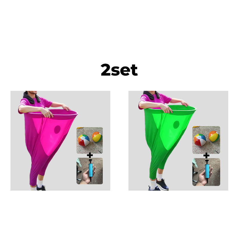 KOMPLETT OG KLAR TIL LEK - Settet inneholder alt du trenger for å begynne å leke: en bestemorstrusefanger, to oppblåsbare kasteballer og en pumpe for rask oppblåsing. Alle delene er lette og kompakte, noe som gjør dem enkle å transportere og oppbevare.