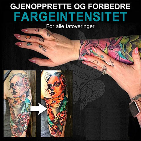 Ikke la den nye tatoveringen tørke ut, blekne eller enda verre arrdanne huden din. Tatovering Oppfriskende Etterbehandlingsbalsam er spesielt utviklet for å hjelpe sårene fra tatoveringen til å gro raskere, samt holde fargene skarpe!