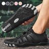 Sklisikker og slitesterk: En robust yttersåle i gummi med forbedret mønster gir utmerket grep på vått og glatt underlag, samtidig som den gir støtdemping og stabilitet. De er designet med effektive dreneringskanaler som forbedrer spredningen av gjørme og sand, noe som sikrer en bekymringsfri gangopplevelse i utfordrende terreng.