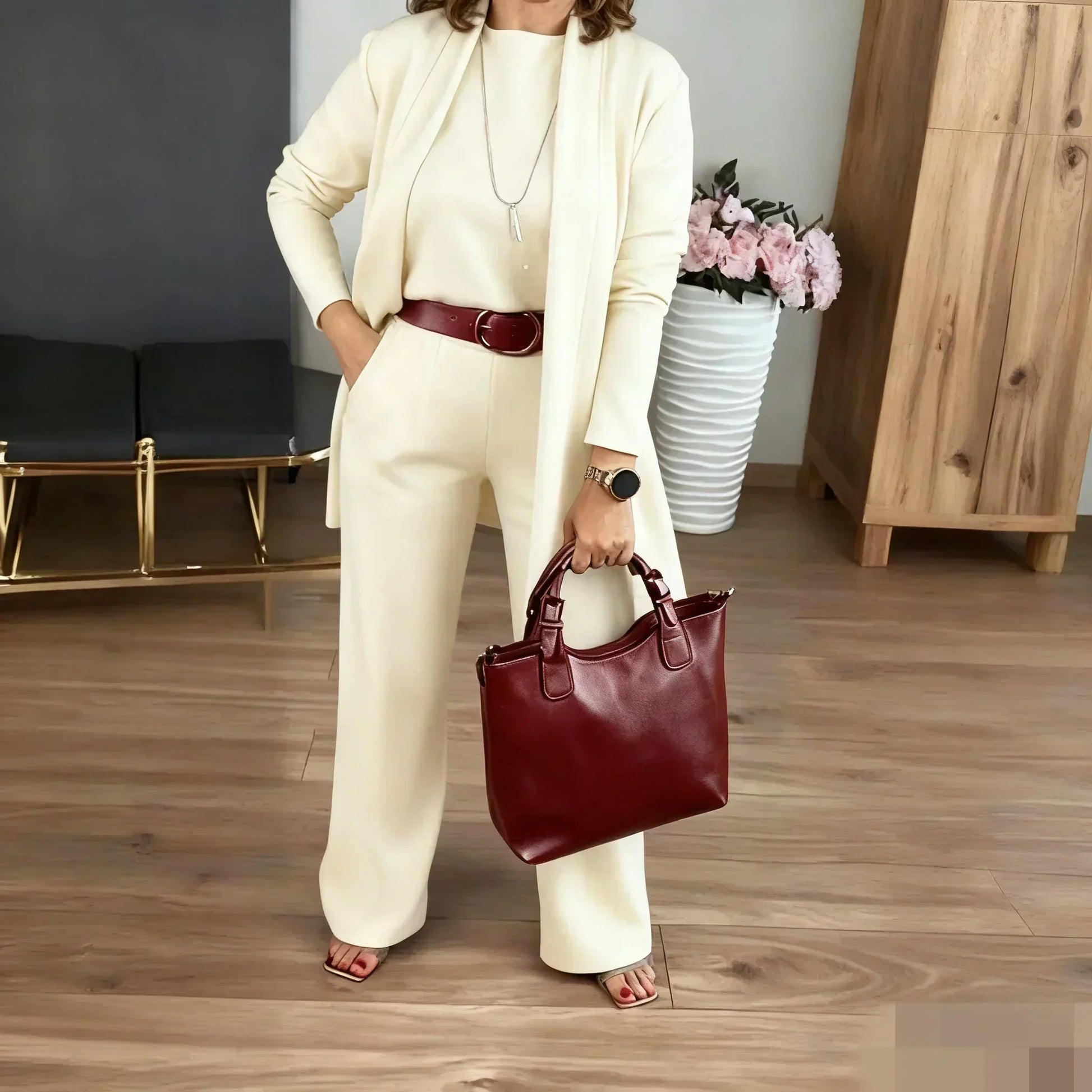 ⏳Tidsbegrenset spesialtilbud⏰Elegant 3-delt sett med lang cardigan, topp og bukse💞