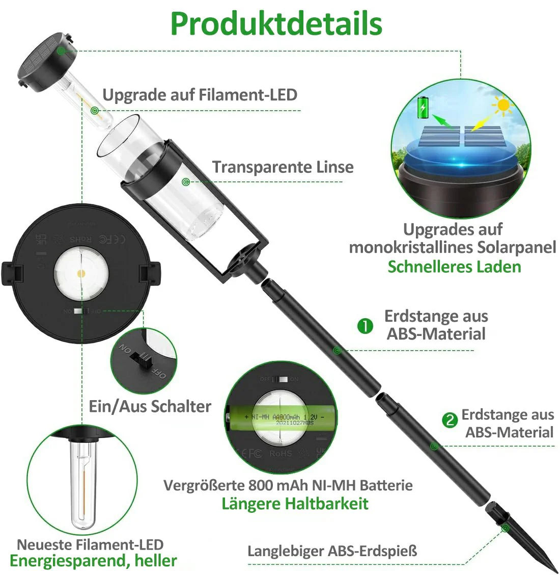 ✨Solcelledrevne hagelamper er utstyrt med et kraftig oppladbart NI-MH-batteri.