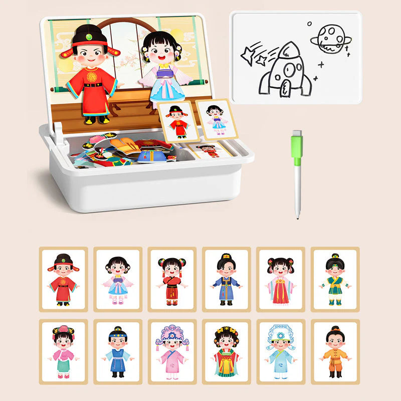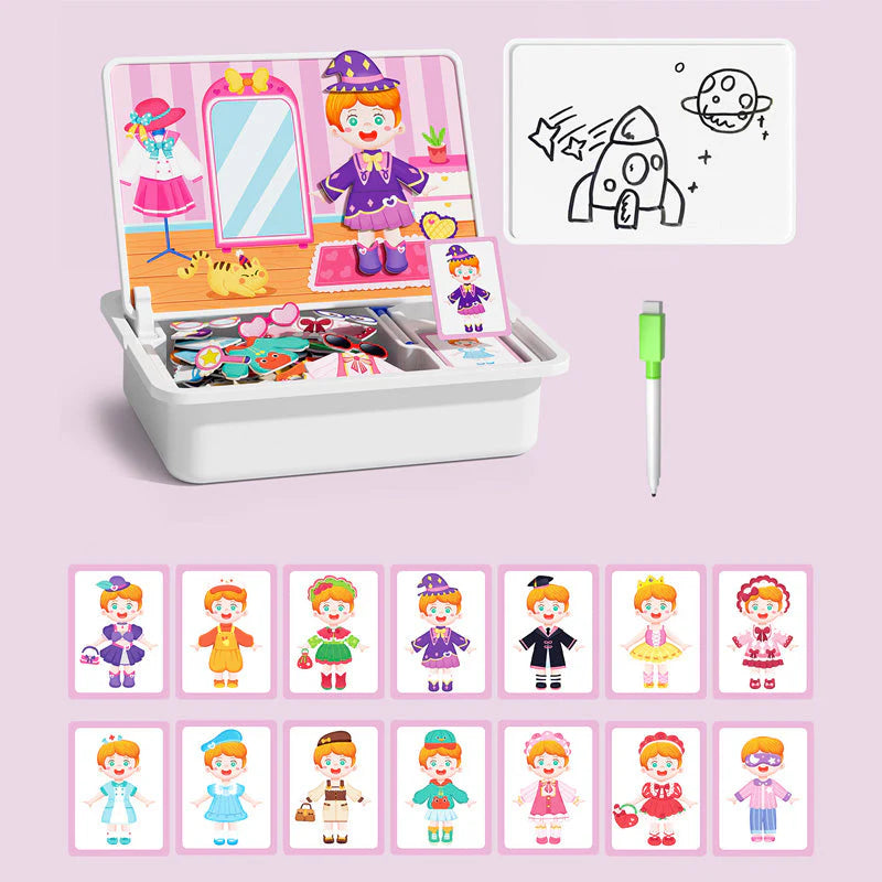Magnetisk puslespillboks for barn med spill og tegnebrett