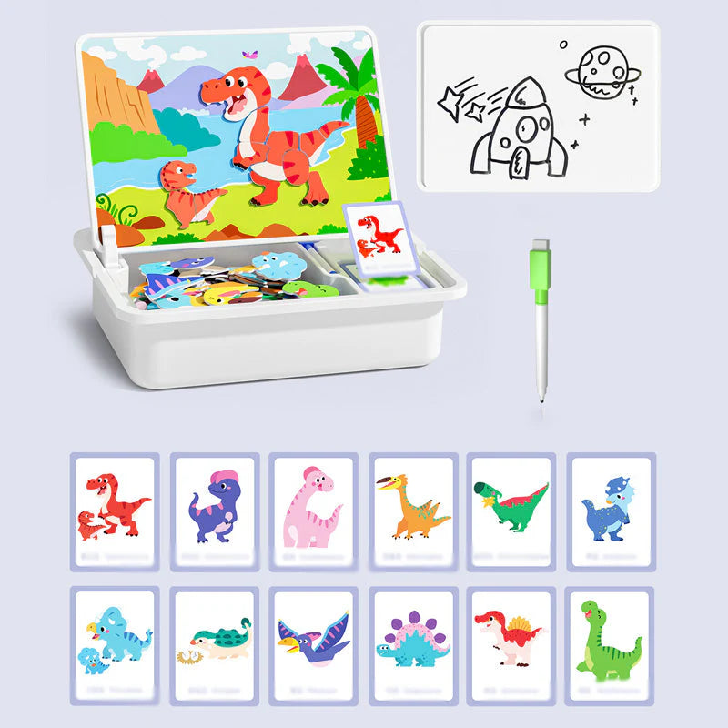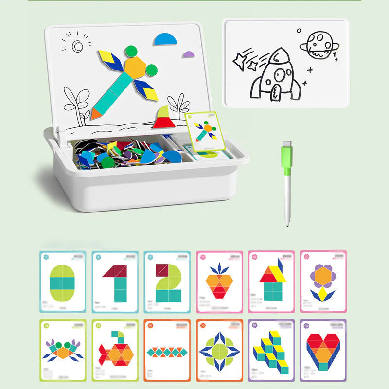 Alt-i-ett pedagogisk leketøy – Denne magnetiske puslespillboksen kombinerer et tegnebrett og et pedagogisk spill i ett, og gir uendelige timer med kreativ lek samtidig som den fremmer problemløsning og finmotorikk.