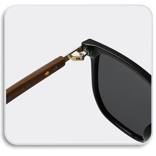 Klassiske solbriller med firkantet treramme og polariserte glass