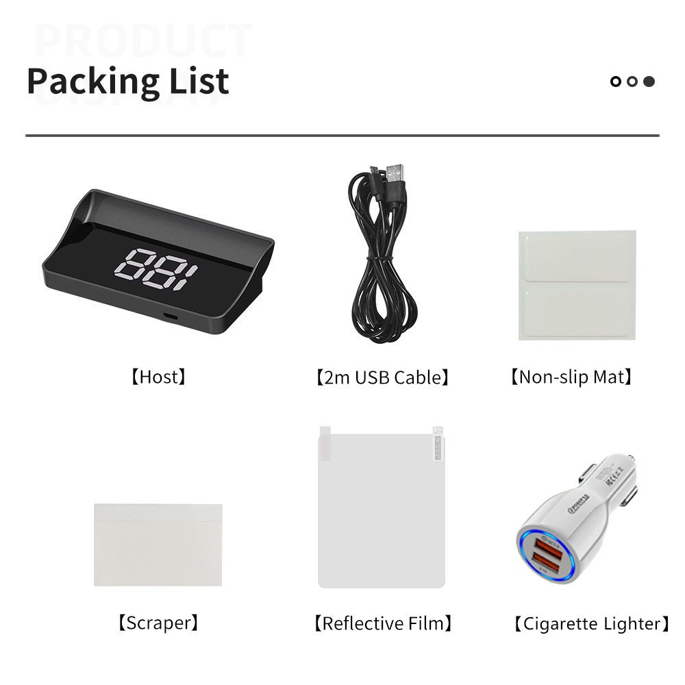 Pakken inkluderer: 1* Hastighetsmåler med Head-Up Display for biler