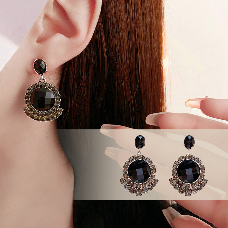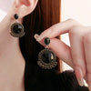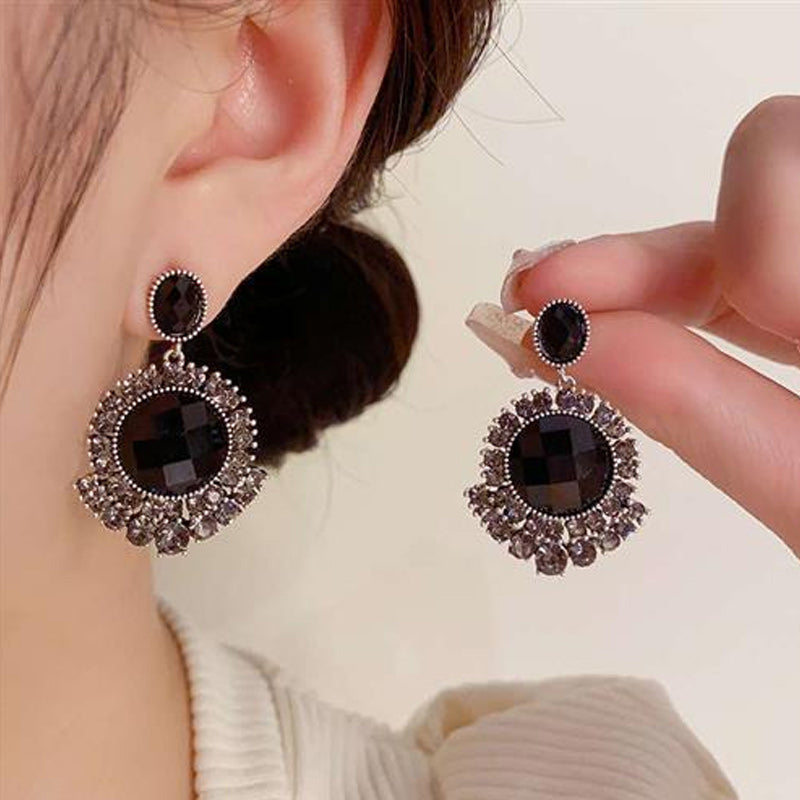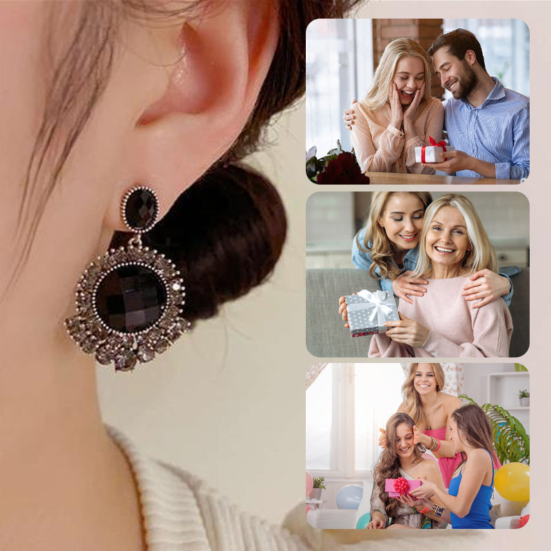 ELEGANT SOLSIKKKODESIGN - Disse runde dråpeøreringene i svart krystall har et vakkert og intrikat solsikkedesign som tilfører et snev av naturinspirert eleganse. Den distinkte formen forsterker det estetiske uttrykket og gjør dem til et perfekt statement-smykke til enhver anledning, enten det er en formell kveld eller en uformell dag ute.