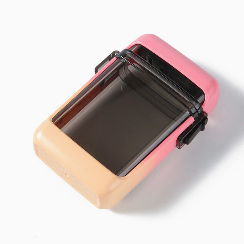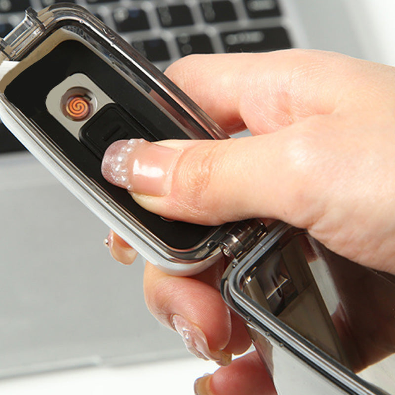 Forseglet vanntett, gjennomsiktig sigarettetui med lighte