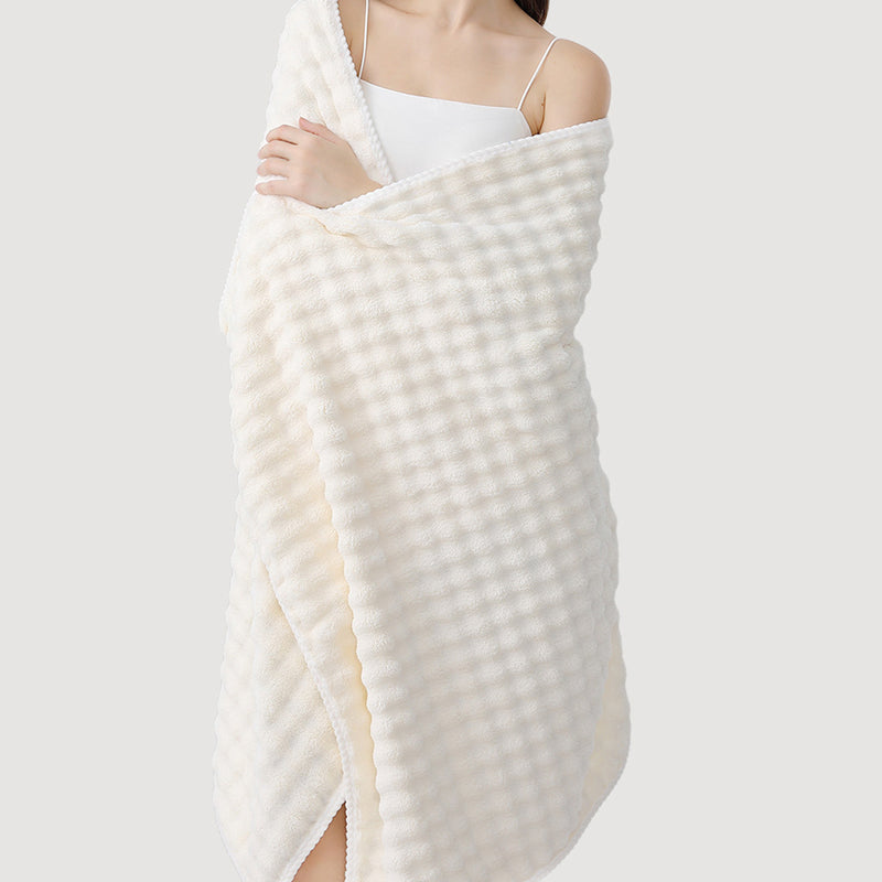 SKYKLIG KOMFORT: Den luftige teksturen gir en luksuriøs skylignende følelse, perfekt for å pakke deg inn i varme etter et langt bad eller en dusj. Ideell for avslapping etter badet.