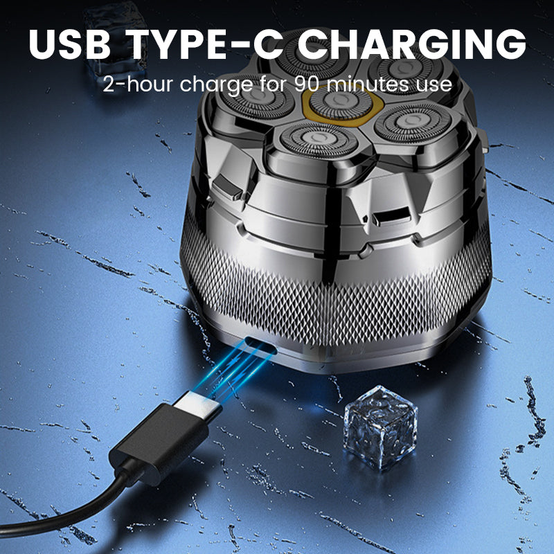 PRESISJONSBARBERING MED SEKS BLADER – Denne barbermaskinen er spesielt utviklet for barbering av hodet, og har seks ultraskarpe blader som jobber sammen for å fange hvert hårstrå i én jevn bevegelse, noe som gir en rask og komfortabel barbering uten å gå glipp av noen flekker.