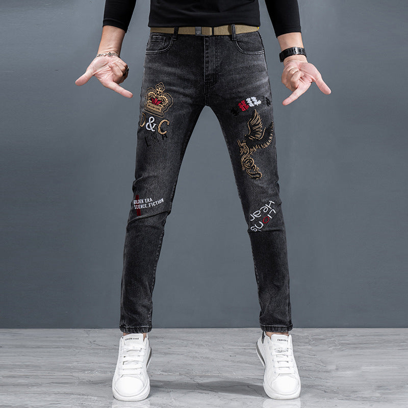 TRENDY TRYKT DESIGN: Unike grafiske mønstre gir en dristig og stilig touch, noe som gjør at disse jeansene skiller seg ut for uformelle streetwear og moteriktige hverdagsantrekk.