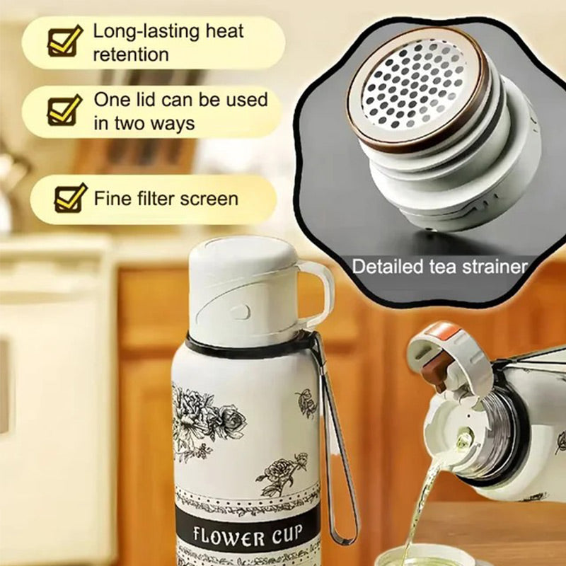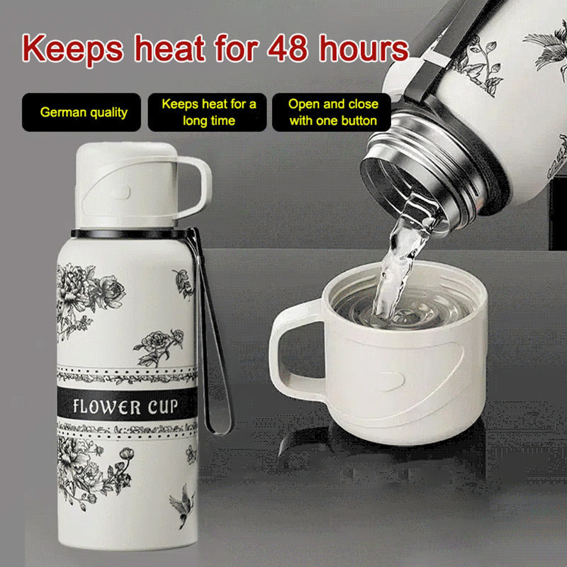 Pakken inkluderer: 1*Gardenia-mønster termisk kopp med stor kapasitet